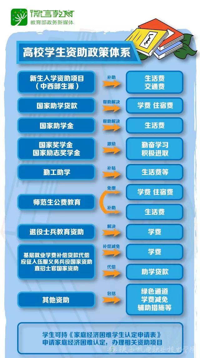 国家在高等教育本专科阶段建立起国家奖学金、国家助学金、国家助学贷款等多种形式有机结合的高校学生资助政策体系,确保家庭经济困难学生入学前、入学时和入学后“三不愁”。