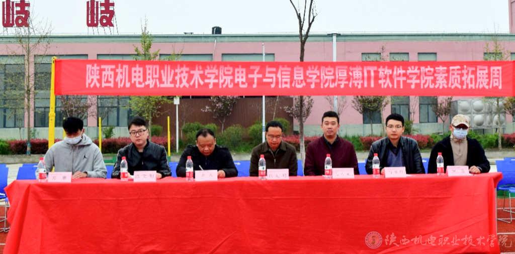 为了丰富学生的大学生活,提升学生综合素质及职业态度,培养团队协作意识和拼搏精神,陕西机电职业技术学院电子与信息学院厚溥IT软件学院于4月10日上午,举行了户外拓展训练活动开幕仪式,党委副书记、院长向纪明,陕西厚溥教育科技有限公司副总经理李杰等到会并致辞,开幕式由电子与信息学院院长姜有奇主持。
