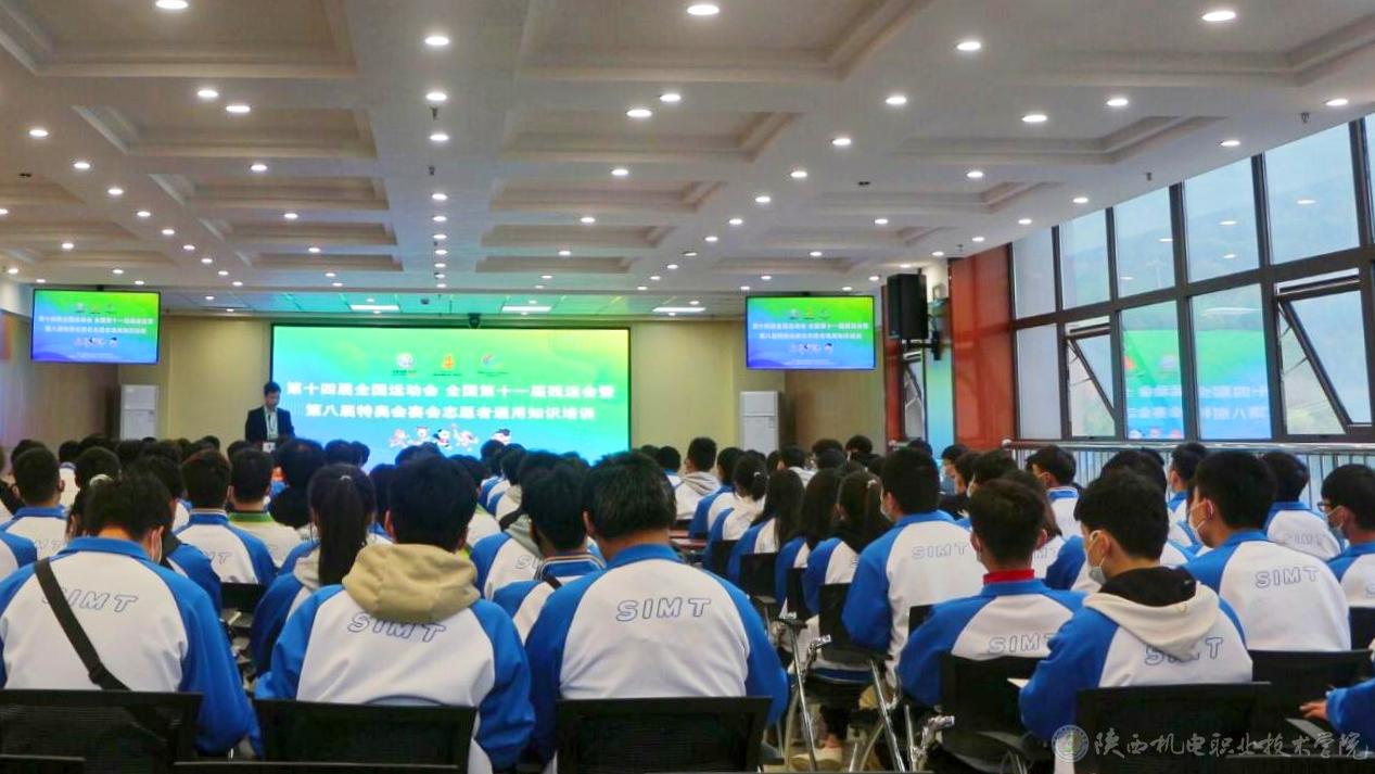 十四运会和残特奥会2021年度赛会志愿者通用知识线下培训于4月10日正式启动,陕西机电职业技术学院分会场共167名志愿者参加培训。培训课程包括《陕西省概论》、《志愿者心理调节》、《志愿者角色认知与志愿者服务概述》、《赛会应急事件处理与急救技能训练》、《全运会、残特奥会常识》、《志愿者通用政策解读》、《残疾人服务培训》、《赛会礼仪形象训练》共八个项内容。