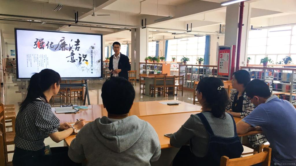 5月27日下午,宣传纪监党支部在蟠龙校区图书馆二楼西厅开展了新时代廉洁文化建设专题学习。学习贯彻习近平总书记关于廉洁文化建设的重要讲话精神,并开展了专题党课学习。会议由党支部书记李明主持,全体支部党员参加了此次学习。