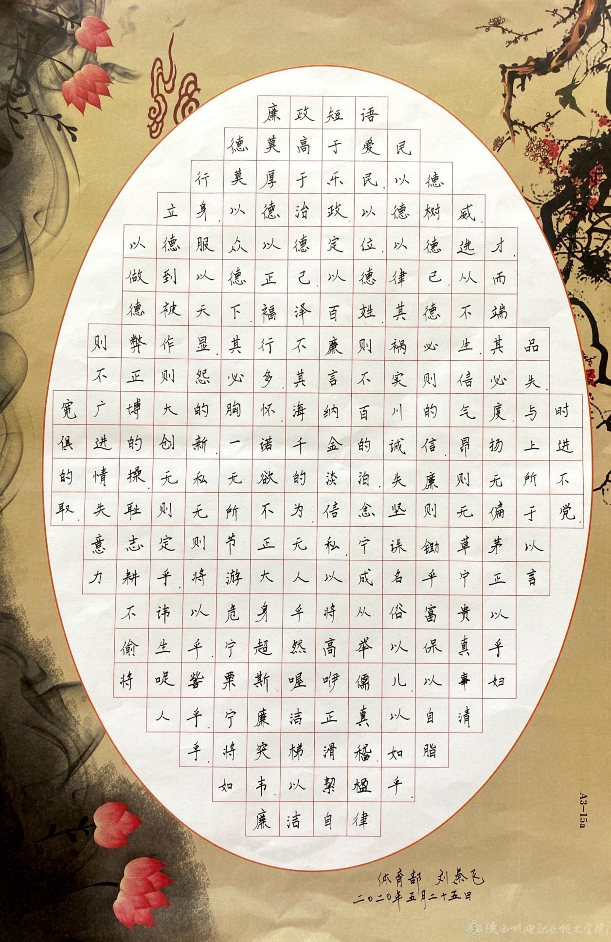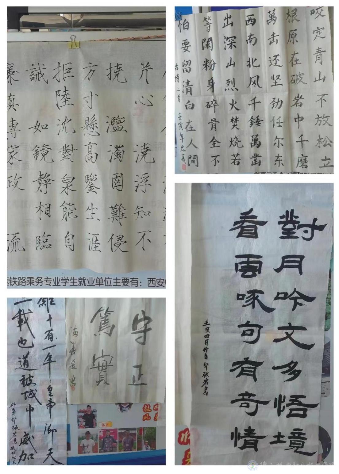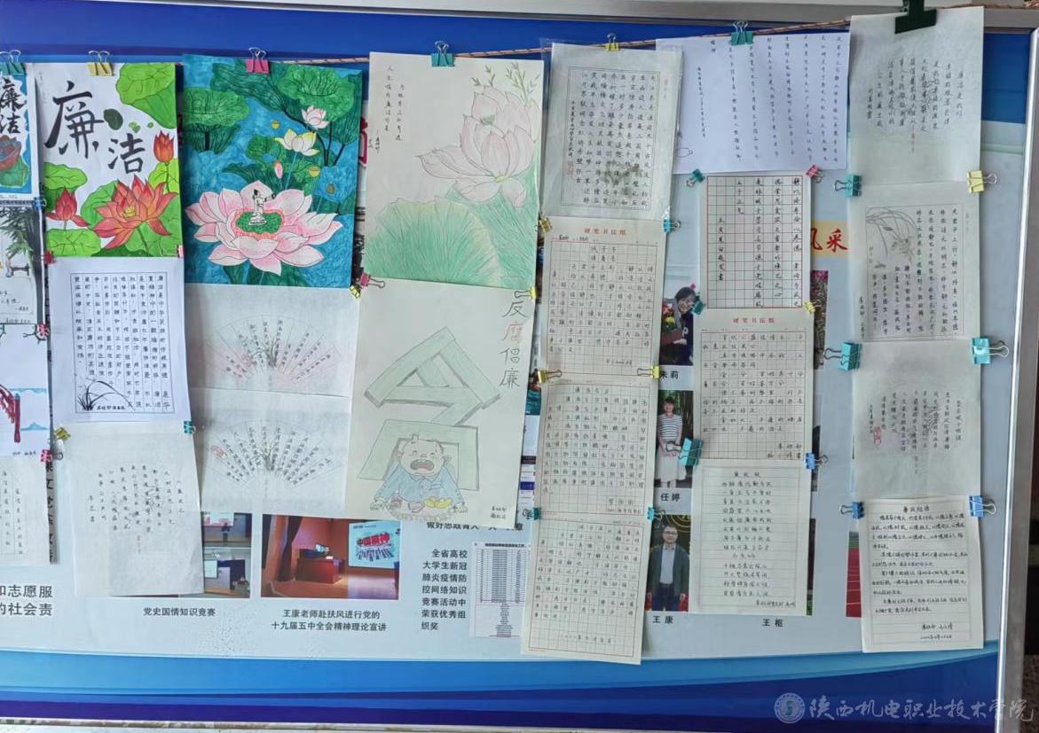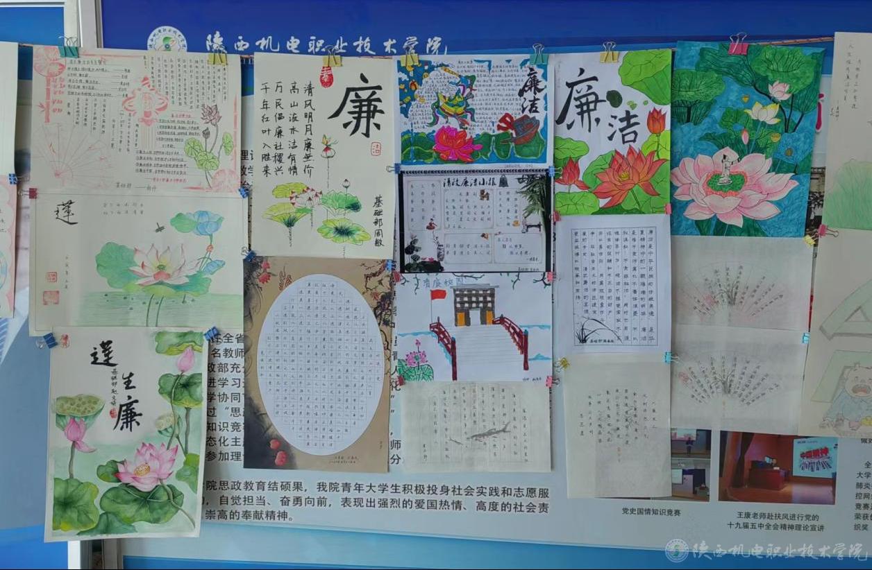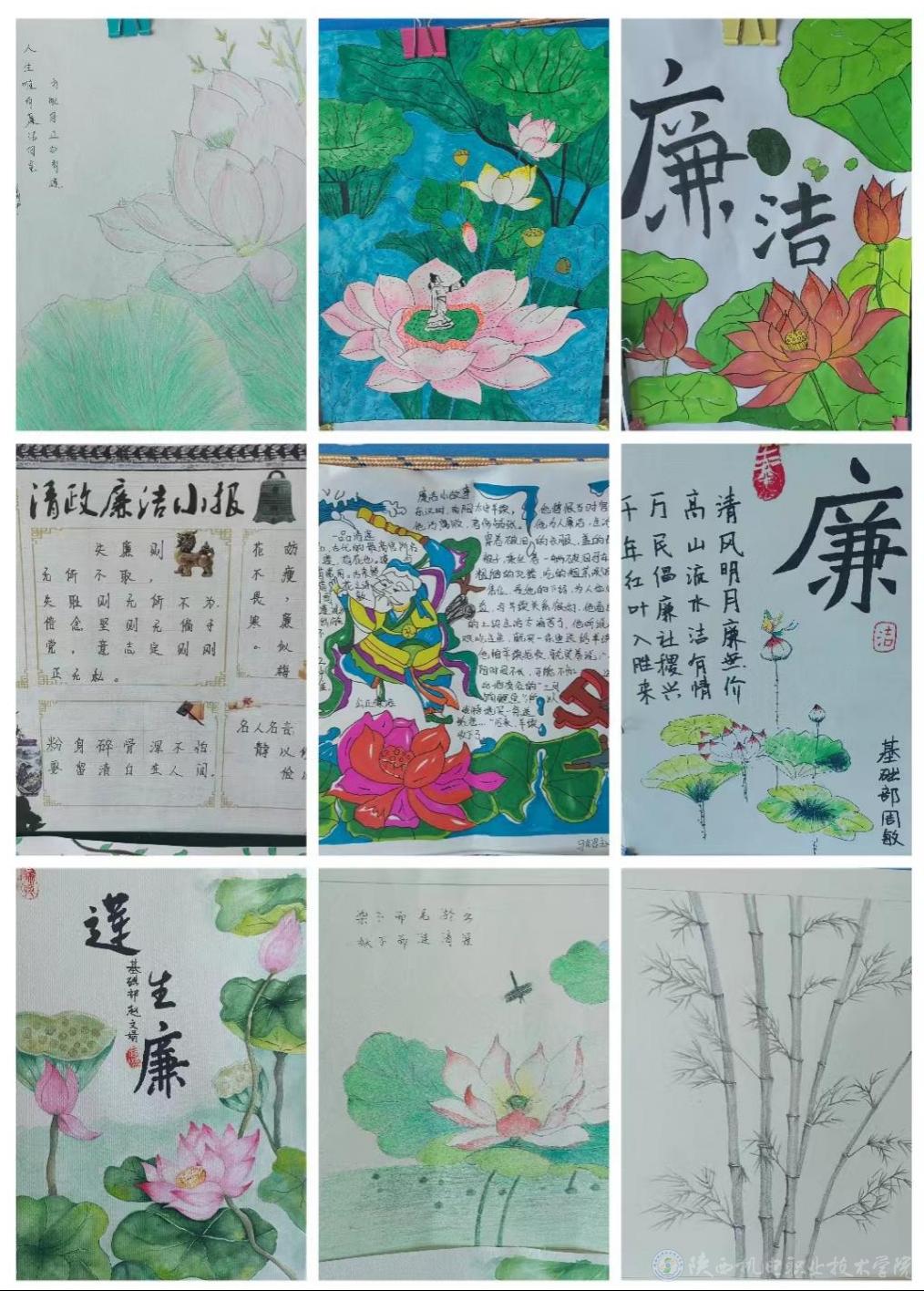 为扎实有效地开展我校廉洁文化宣传教育月活动,不断加强基础部党支部党风廉政建设,树立廉洁从教、服务学生、以文倡廉、以廉化人的清风正气,5月31日,基础部党支部在宝福路校区举办廉政书画展活动。此次书画展共展出作品45幅,既有廉诗、廉对、廉政格言警句,也有借物咏志的山水花鸟画作。作品均以廉政廉洁为主题,内容丰富、风格独特、题材多样。