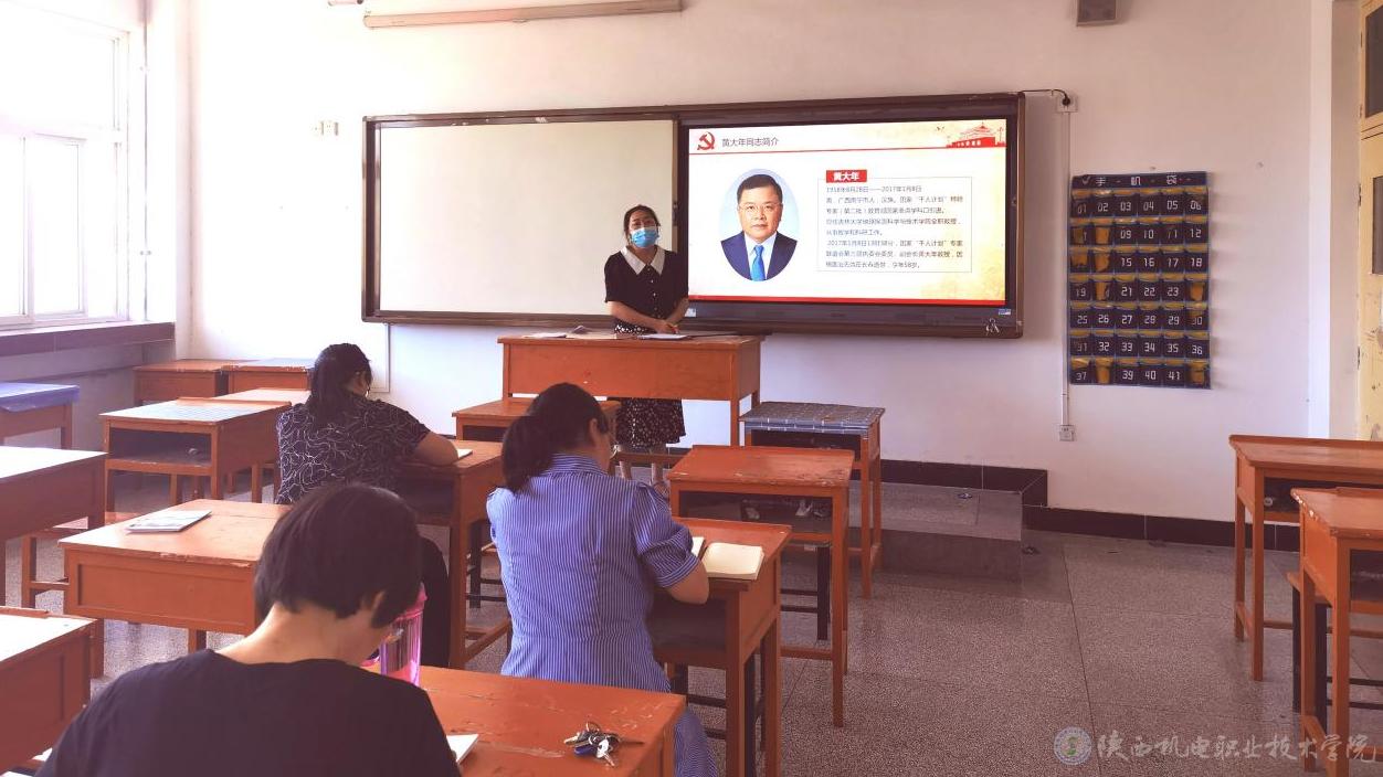 结合习近平总书记对黄大年同志先进事迹重要指示精神,赵娥同志带领全体教师从以下三个方面进行学习。一是黄大年同志简介。主要从人物生平、个人生活、生前荣誉等几个方面对黄大年同志进行介绍,以黄大年同志为榜样,学习其爱国情怀、敬业精神以及高尚情操。二是黄大年同志先进事迹。通过组织观看记录片的形式学习黄大年同志的先进事迹,引导教师树立强烈的奉献意识、创新意识以及争先意识。三是“全国高校黄大年式教学团队”。通过分享包括“西安航空职业技术学院飞机机电设备维修教师团队”在内的几个教学团队的事迹,引导教师坚定理想信念,凝聚团队力量,立德修身,潜心治学,开拓创新。