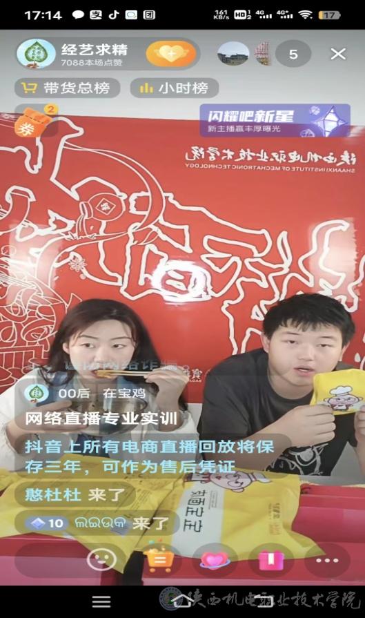 2023年5月29日起(周内每天下午4点到5点30分),经管与艺术学院网络营销与直播电商专业学生利用宝鸡擀面皮产业学院的抖音号(附后),对陕西机电职业技术学院、宝鸡擀面皮产业学院、以及宝鸡擀面皮产业学院的产品进行网络宣传推广。