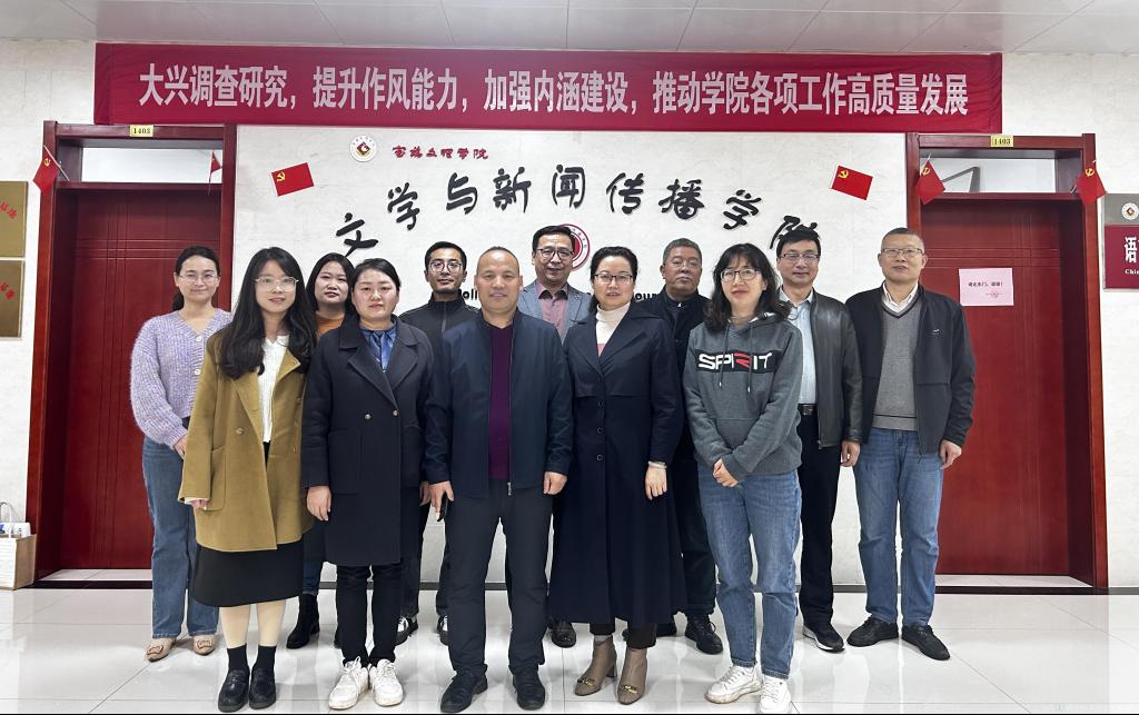 为进一步优化我校语言文字工作的开展,顺利完成2024年语言文字达标建设工作,10月18日上午,基础部党支部书记、副部长李明带领我校语文教研室老师一行5人前往宝鸡文理学院文学与新闻传播学院开展语言文字工作学习交流活动。