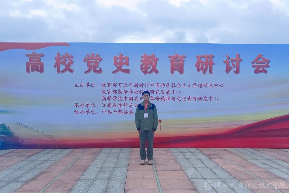 为深入学习贯彻党的二十届三中全会和全国教育大会精神,弘扬伟大建党精神,传承中国共产党人精神谱系,推动中共党史、伟大建党精神与文化资源研究教育宣传,充分发挥中共党史资政育人作用,11月15日至17日,由教育部习近平新时代中国特色社会主义思想研究中心、教育部高等学校科学研究发展中心、高等学校中国共产党革命精神与文化资源研究中心主办,江西科技师范大学承办、中共于都县委协办的“新中国成立75周年与中国式现代化”高校党史教育研讨会在江西于都召开。陕西机电职业技术学院教师肖李华受邀参加了此次研讨会。