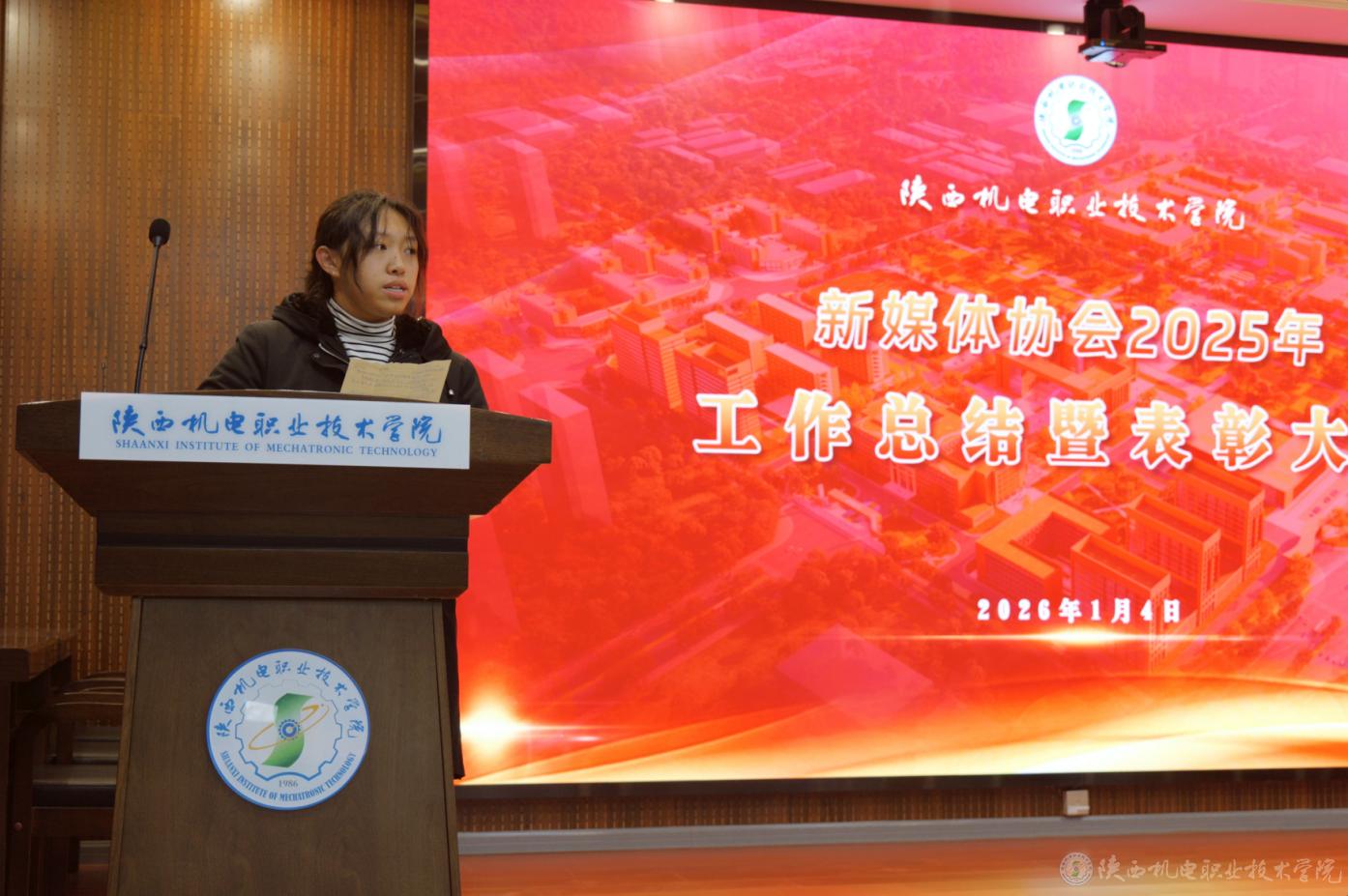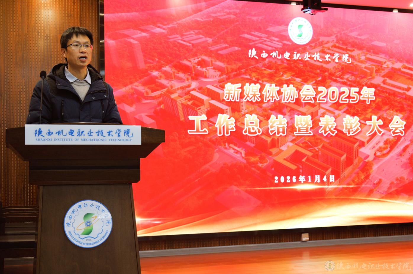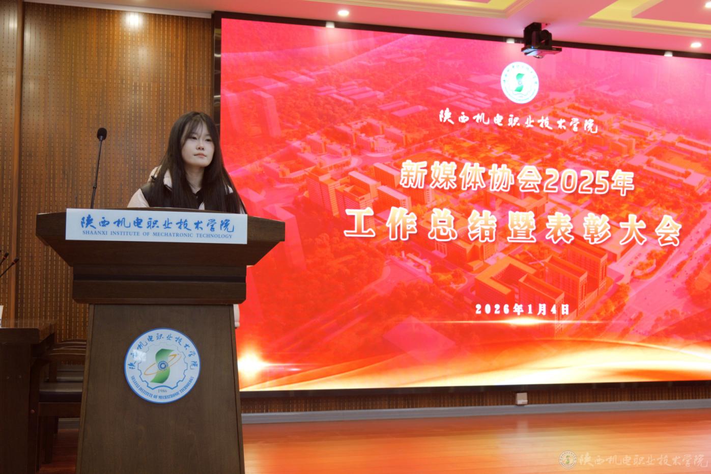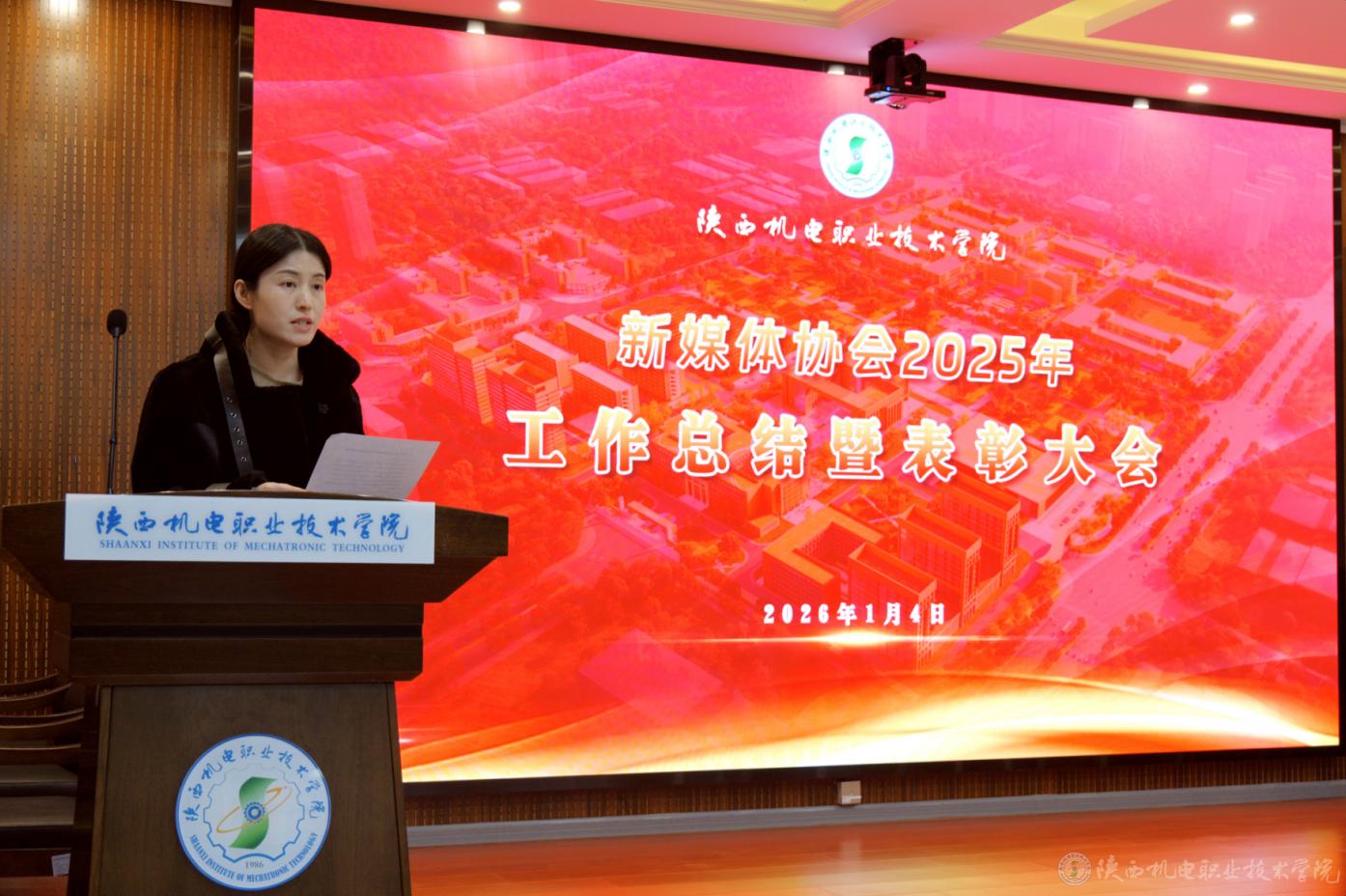 1月4日,陕西机电职业技术学院新媒体协会2025年度工作总结暨表彰大会在博学楼111会议室举行。学校党委委员、宣传部部长李明,马克思主义学院综合办公室主任屈婉蓉参加表彰大会。